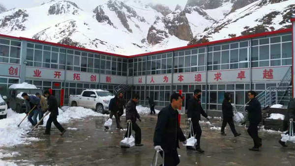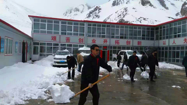 2016年3月21日青海共和縣青海銅鑫礦業(yè)有限公司礦區(qū)迎來了自春節(jié)以來的第一場大雪,前幾這里還太陽高照,天氣晴朗,與此同時(shí)洛陽陽光明媚,鳥語花香,現(xiàn)在青海銅鑫礦區(qū)則被厚厚的白雪覆蓋,呈現(xiàn)出另一番別樣的景像。青海分公司員工也一起參加礦山工作區(qū)的除雪工作,個(gè)個(gè)干得熱火朝天,一會兒大院里的雪就被清理完畢。
